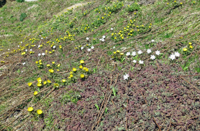 雪深い会津にも春が来た。先日、車で約30分の集落に咲いている福寿草を見に行った。