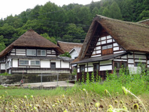 9月6日に所用があり、久しぶりに南会津を訪ねた。ここも茅葺の集落が現存するが、大内宿(下郷町)と同じように雪深い会津の民家が今でも残されている。標高670mの緩やかな斜面に位置し積雪量が2mを超える豪雪地域であり、山々を背景に春は桜、秋は紅葉や松などの樹木の景観が曲家と合い間って日本の原風景が見られる。