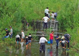私が居住する下柴地区は、農業・農村の有する多面的機能を維持・発展させるある補助金をいただいた。このなかには、子供たちが昔ながらの川遊びで生きものを調べたりする活動があり、24日に近くの清流・姥堂川で「生きもの調査」を行った。近年、川に入る機会がない子供たちであるが、慣れると真剣な眼差しで魚などを探した。夏休みの最後にいい思い出となってほしい。